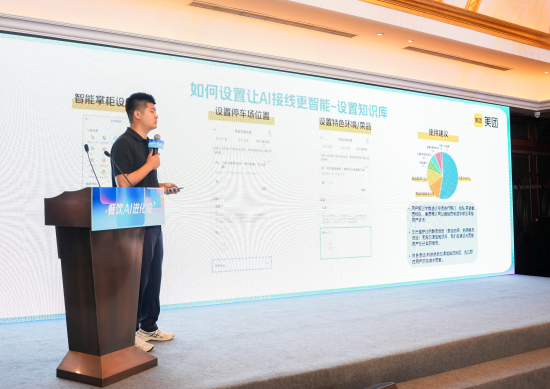 活动现场,来自美团的AI产品团队专家结合具体经营场景,向与会商家代表介绍了上述AI产品的功能和使用方法,并结合现场商家遇到的难点、痛点,进行针对性回答。